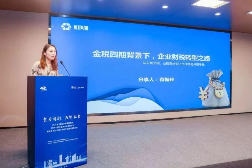 會上,袁梅玲女士就《金稅四期背景下,企業(yè)財稅轉型之路》一題發(fā)表了精彩分享。她首先分析了金稅四期政策對企業(yè)財稅管理的影響,指出在新的稅制改革下,企業(yè)必須加快財稅轉型,以適應更加嚴格和規(guī)范的稅收環(huán)境。